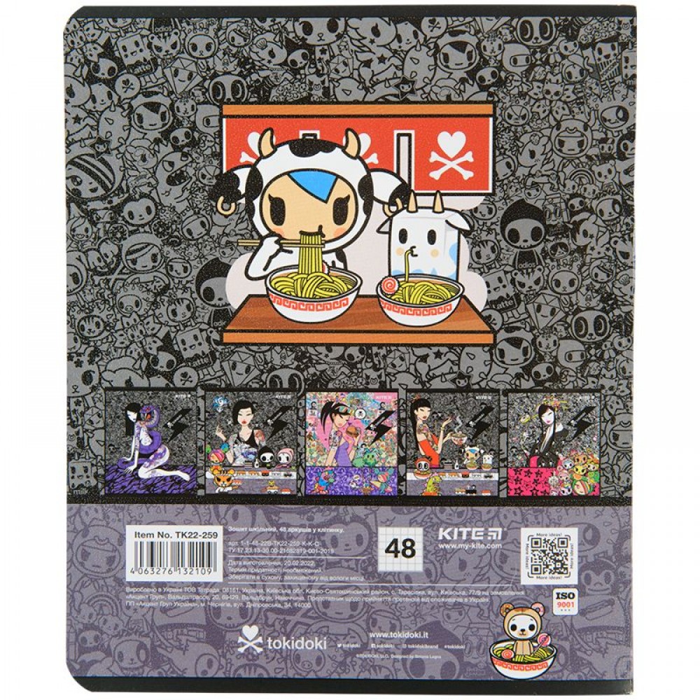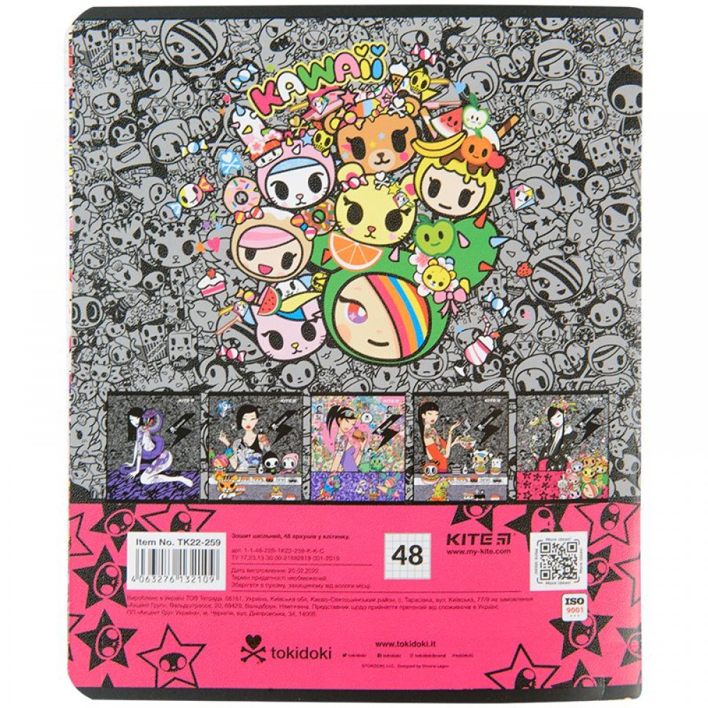 Зошит загальний на скобі Kite має 48 аркуші, представлений у зручному форматі А5. Аркуші в зошиті зроблені зі щільного паперу, розлініяні в клітинку. Виріб представлено в ущільненій кольоровій обкладинці в 5 дизайнах. Ефект на обкладинці:гібридний лак та вибірковий УФ-лак.