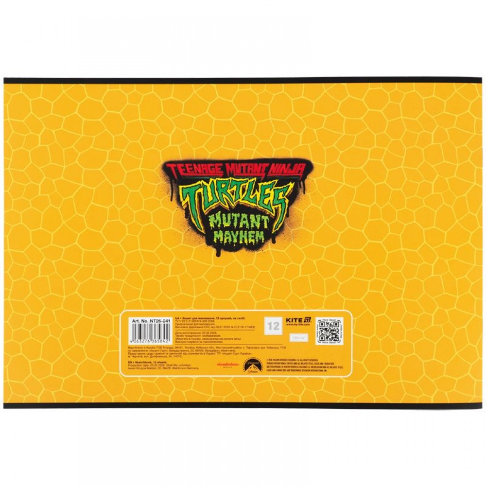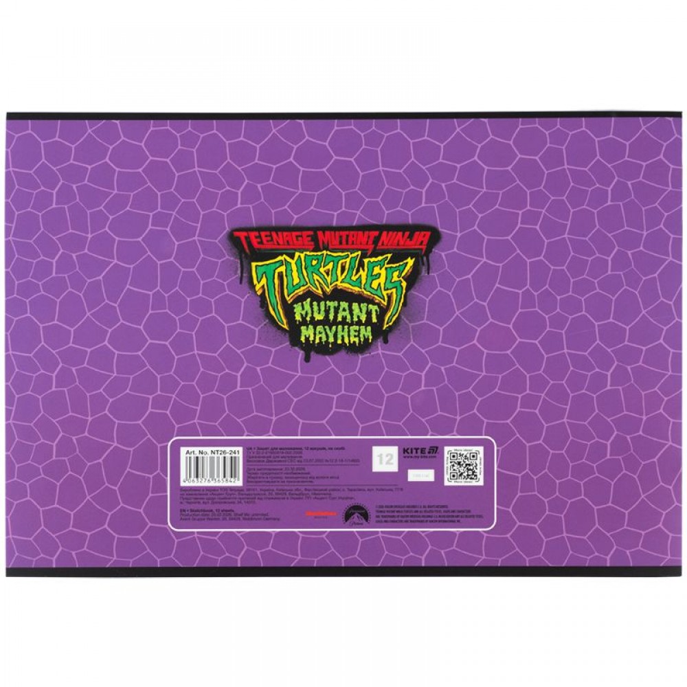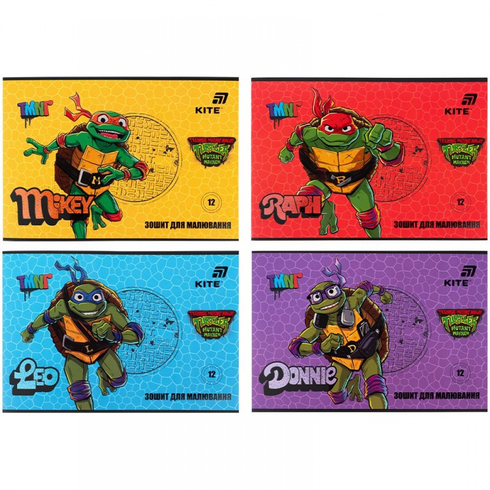 Горизонтальний зошит для малювання Kite в картонній обкладинці. Складається із 12 білих ущільнених (100 г/м2) аркушів формату А4, скріплених скобою з мікроперфорацією. Обкладинка із зображенням персонажів представлена в асортименті (4 дизайни). Зошит для малювання рекомендований для дітей шкільного віку. Ефект на обкладинці: гібридний лак та вибірковий УФ лак.