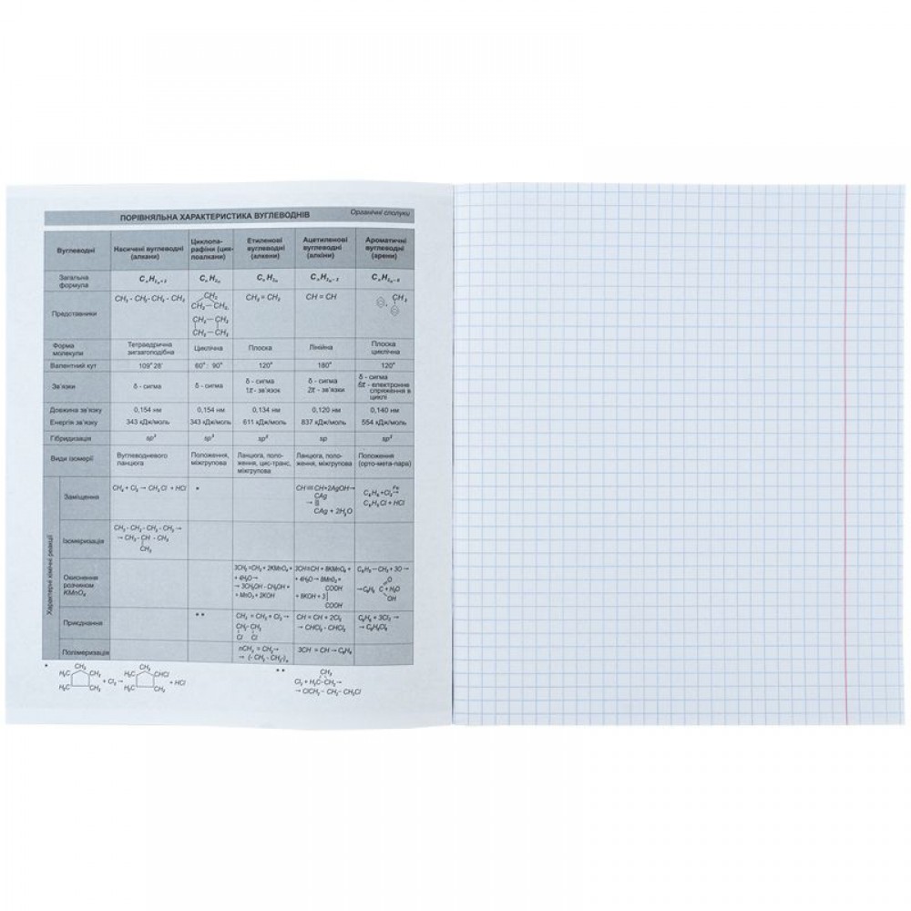 Зошит загальний на скобі Kite має 48 аркуші, представлений у зручному форматі А5. Аркуші в зошиті зроблені зі щільного паперу, розлініяні в клітинку. Виріб представлено в ущільненій кольоровій обкладинці. Додаткові акуші з довідковими матеріалами. Ефект на обкладинці: гібридний лак та уф лак.
